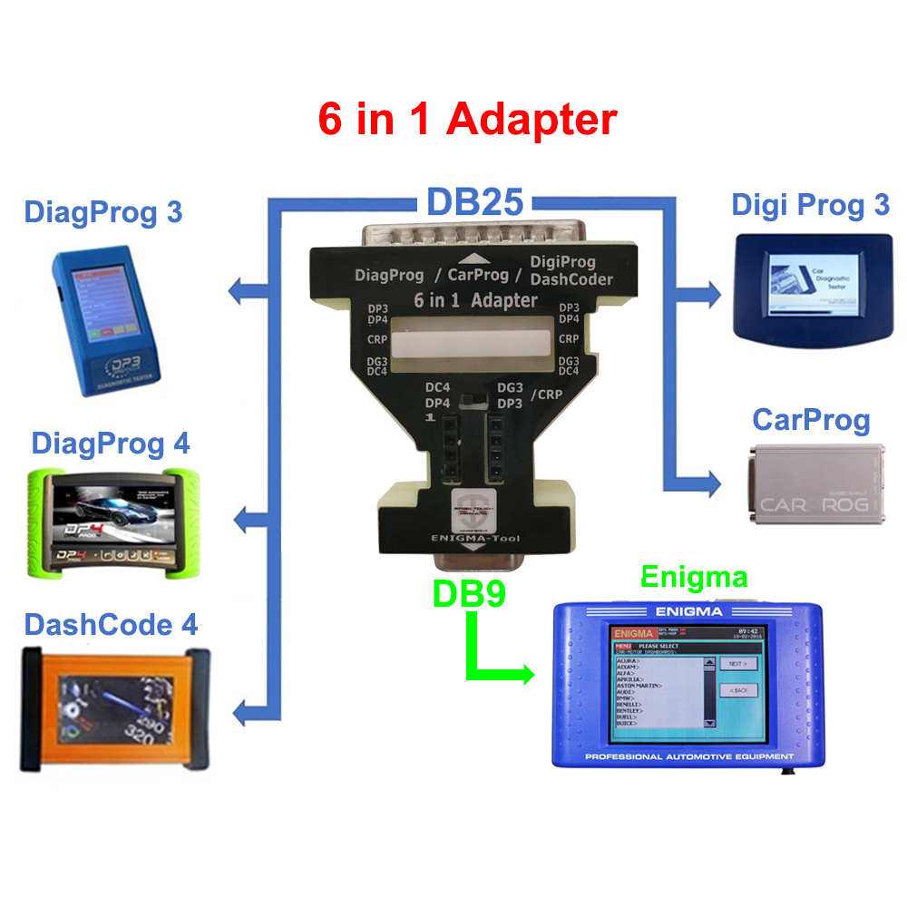 UPA Pogo Pin Adapter Kit comes with DIP-8 Adapter which is compatible with most commonly used programmer in market such as: XHorse VVDI Prog, DigiProg(DG3), DiagProg(DP4), Enigma, GQ-4X, TNM5000, iProg+, CarProg, MiniPro TL866, RT809, Sofi-SP8, CH341...