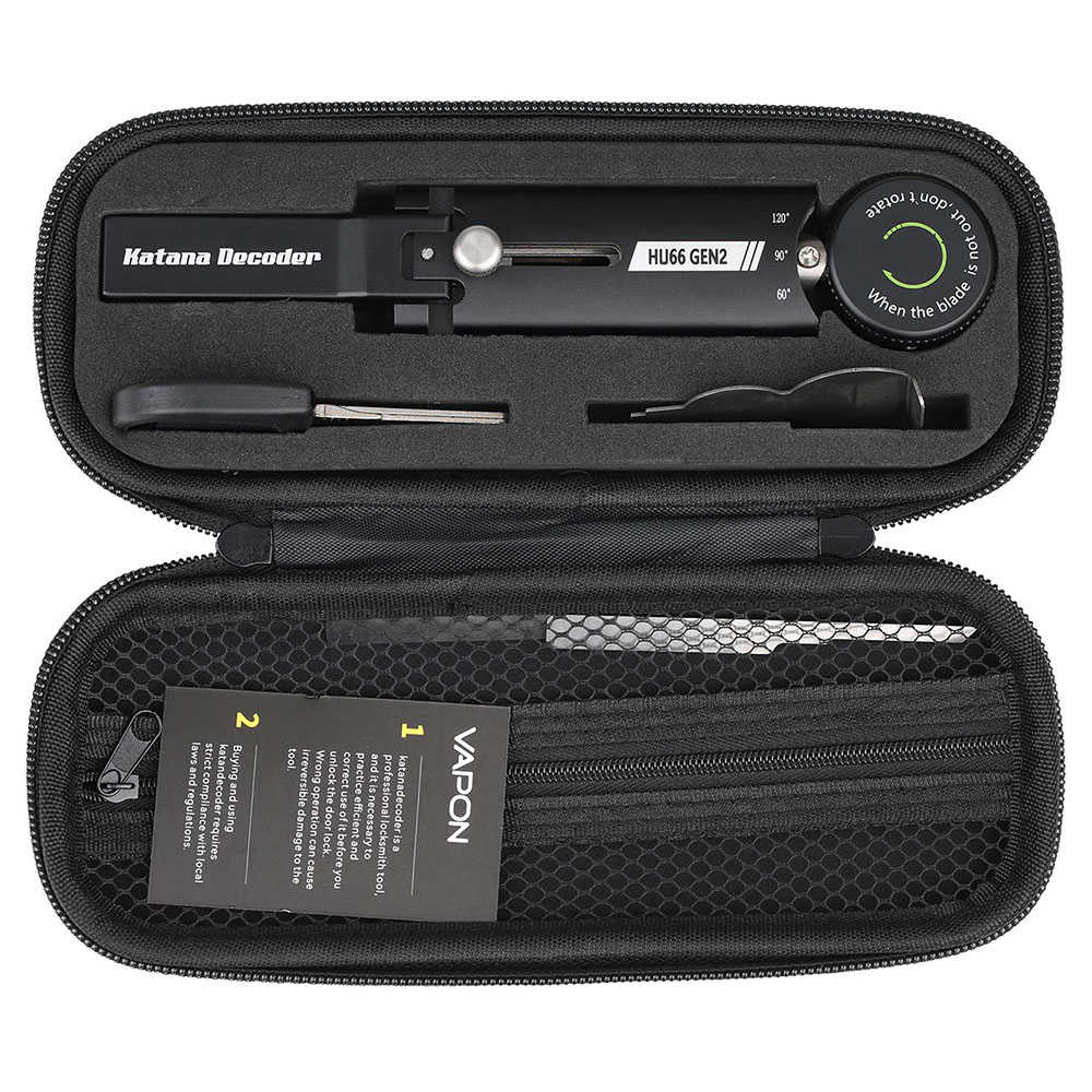 VAPON Katana Decoder HU66 Gen2 Auto Pick and Decoder is a quick opening tool for car locksmiths, which can be used to open HU66 car doors. The innovation of the tool is to make the uses as dependent on the tool as possible. It only needs left and right vibrations, and it can open the lock quickly and read the lock easily at the same time. You do not need to invest time in learning complex metrics and using complexity, it will help you solve problems instantly when you get them.