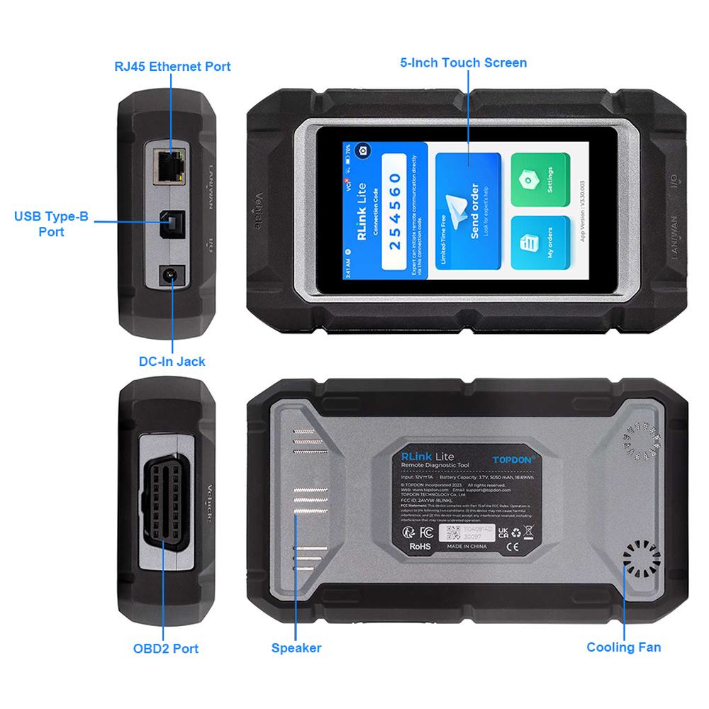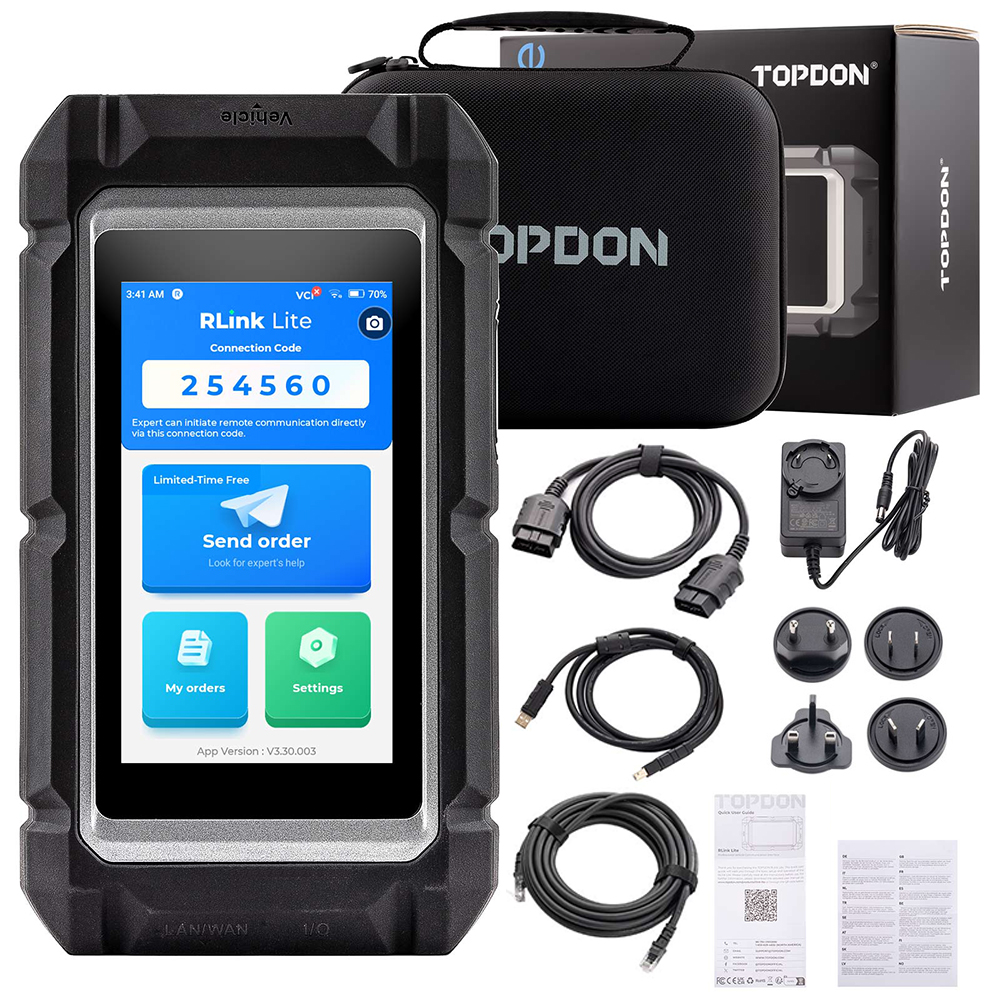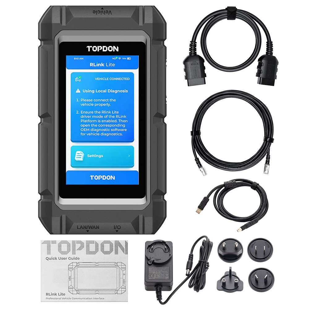 TOPDON RLink Lite is a versatile diagnostic tool empowering users to achieve OE-level diagnostics for a wide range of vehicles. Featuring a user-friendly 5-inch LCD touchscreen, this diagnostic device operates smoothly. Serving as an OE software VCI box, TOPDON RLink Lite facilitates seamless diagnostics, programming, and coding for renowned car brands such as Mercedes-Benz, BMW, Porsche, VAG, JLR, Volvo, GM, Toyota, Honda, Nissan, Subaru, Chrysler, Baojun, Ford/Mazda are still under development and will be supported later.