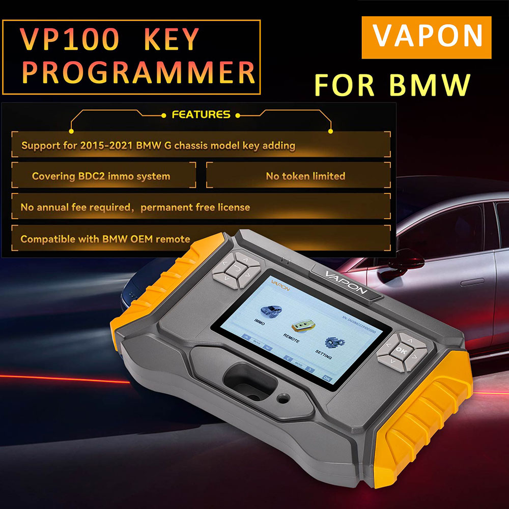 2025 VAPON VP100 Key Programmer BMW supports 2015 - 2021 BMW G Chassis Model Key Adding. No Annual Fee and No Token Needed!