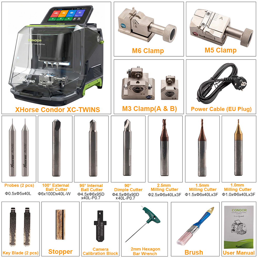 XHorse XCMT01GL Condor XC-TWINS Key Cutting Machine is XHorse new realeased, advanced key cutting machine designed for ultimate efficiency with AI optical recognition and a superior double cutter system for seamless cutting.