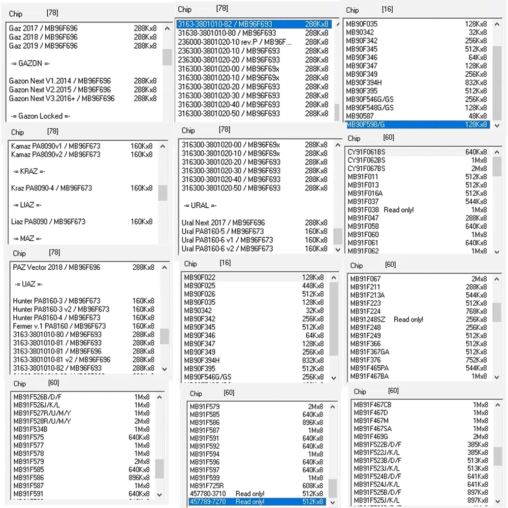 * Supported Interface: I2C, SPI, MicroWire, JTAG, UART, BDM, ISO7816, K-LINE (via adapter), CAN (via adapter).