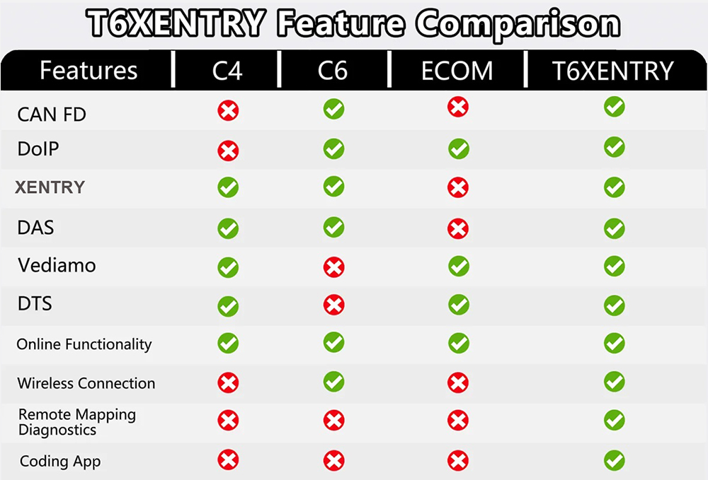 EUCLEIA T6 XENTRY TabScan seamlessly works with a range of Mercedes original software, including XENTRY, DAS, DTS, Vediamo, and more.