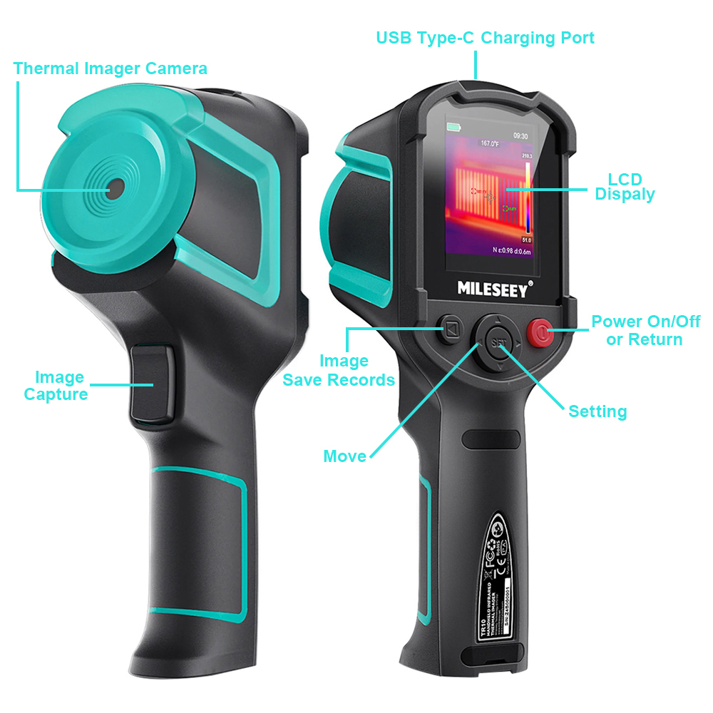 Mileseey TR10 Thermal Imager has high thermal sensitivity NETD <50mk. The temperature range is -4°F to 1022°F. With an accuracy of ±2°C that make the temperature readings dependable.Automatically locks and displays the maximum, minimum, and center-point temperatures within the scanned area. Enhances efficiency in identifying hot spots or anomalies.