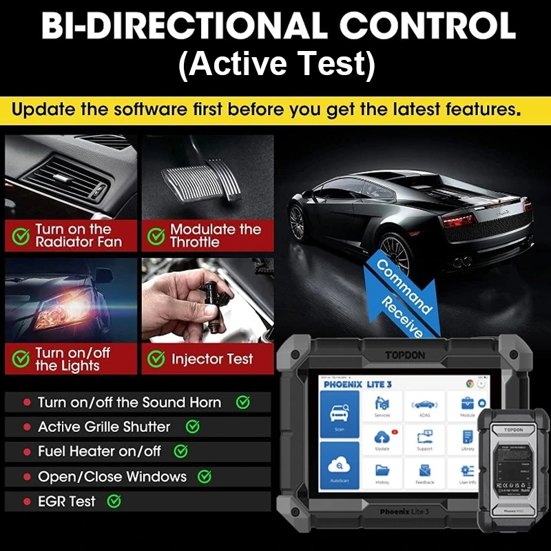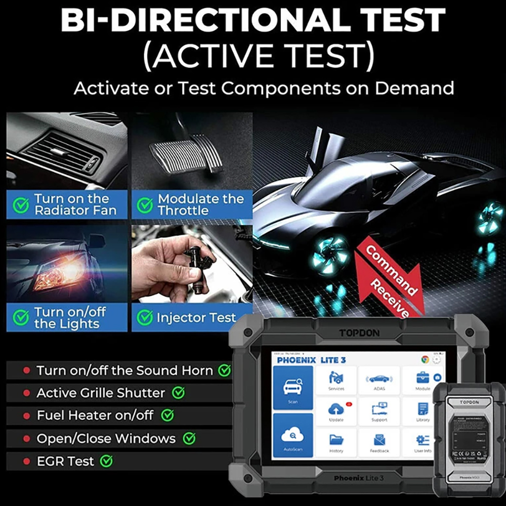 TOPDON Phoenix Lite3 scanner will imitate a mini sensor to transmit command to ECUs to perform specific tests and functions, identify actuator through its response.