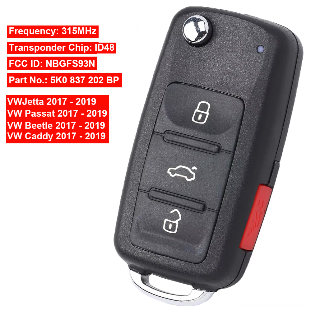 Name: VW 4 Button MQB Remote Key for VW Jetta Passat Beetle Caddy 2017 - 2019