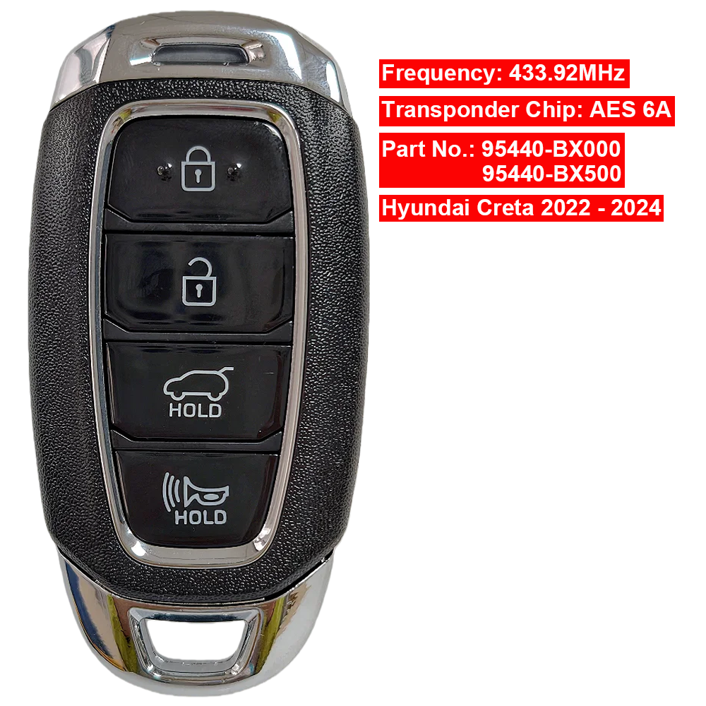 Name: Hyundai 4 Button Remote Key for Creta 2022 - 2024 433MHz