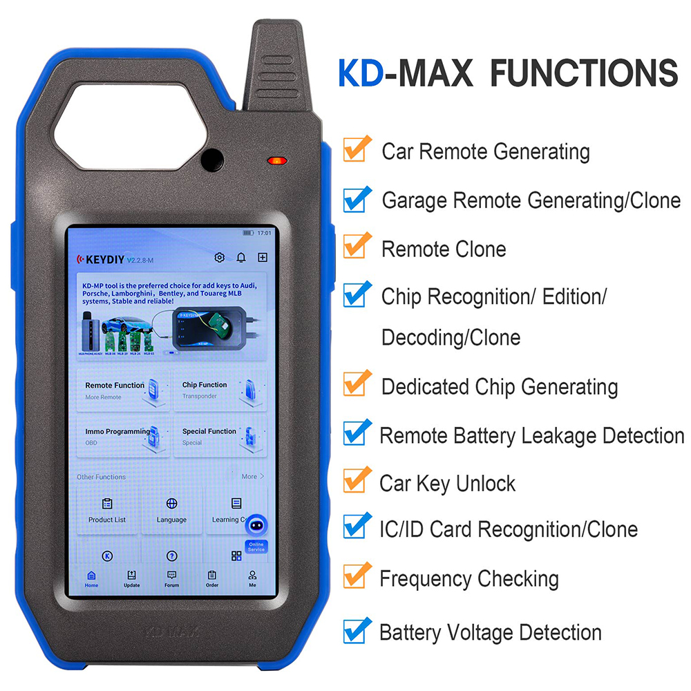 KEYDIY KD Max Remote Key Maker is a professional multi-function smart device. It works with the Android operating systems with a easy to use interface. It is equipped with Bluetooth / WiFi / 5 inch LCD screen.