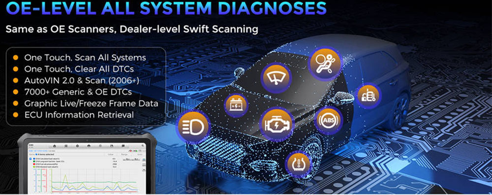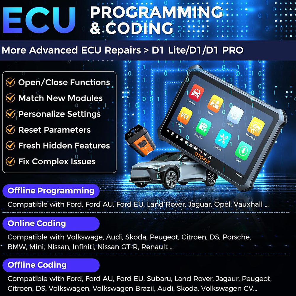 OTOFIX D1 Max2 can access all available vehicle systems including TPMS, ABS, BMS, Engine, AT, BCM, SAS, Airbags, etc., and perform the same diagnostics as the OEM dealer.