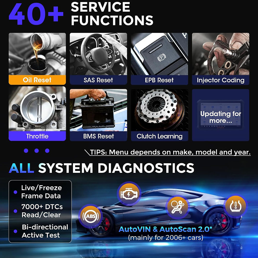 For repair workshops, holding an OTOFIX D1 Max2 automotive scanner is a strong advantage over others. Its 40+ maintenance functions provide various solutions for all module repairs, including Oil Reset, TPMS Reset, Injector Coding, Suspension, Throttle Matching, etc., which will usher your repair business to a new pinnacle. Continuously updating will never make the functionality & compatibility out-of-date.