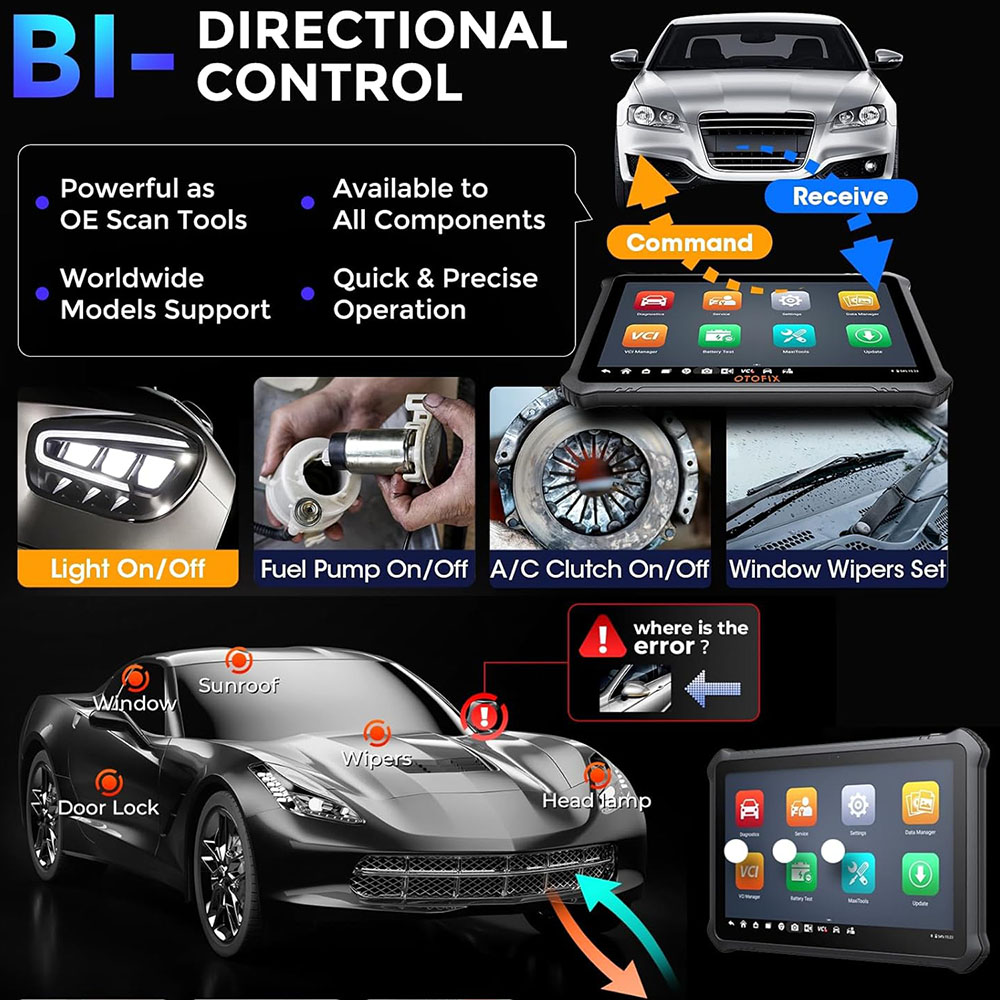 OTOFIX D1 MAX allows you to request information or command the module to perform specific tests and functions without on-broad systems, such as: