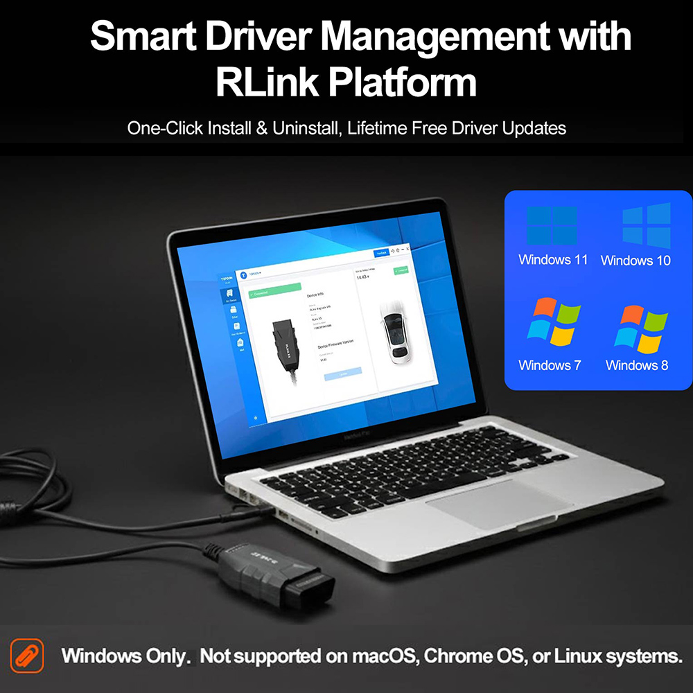 3. Features unique safety functions to protect the device when plugged into power, even in high-voltage vehicles such as 24V commercial trucks, ensuring no damage occurs. Additionally, all RLink X3 drivers and firmware are available for lifetime free upgrades.