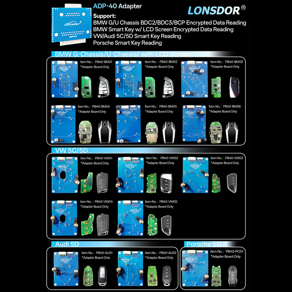 Its nice features are built-in Volkswagen 4th 5th adapter & RFID transponder reader / writer, program Toyota/Lexus smart key all key lost via OBD and free BMW FEM key programming (for all keys lost, enter 32-bit ISN code). Lonsdor K518ISE is specialized on Volvo, Maserati, Ferrari, Lamborghini, Bentley, Nissan etc.