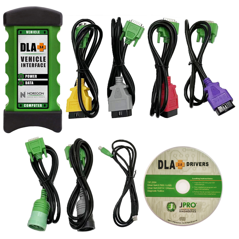 Diesel Heavy Duty Truck Scanner Noergon JPRO DLA+ 2.0 Adapter is a diagnostic communication device designed to interface between a vehicle and PC via USB cable for diagnostic and vehicle information, re-programming or parameter adjustments.