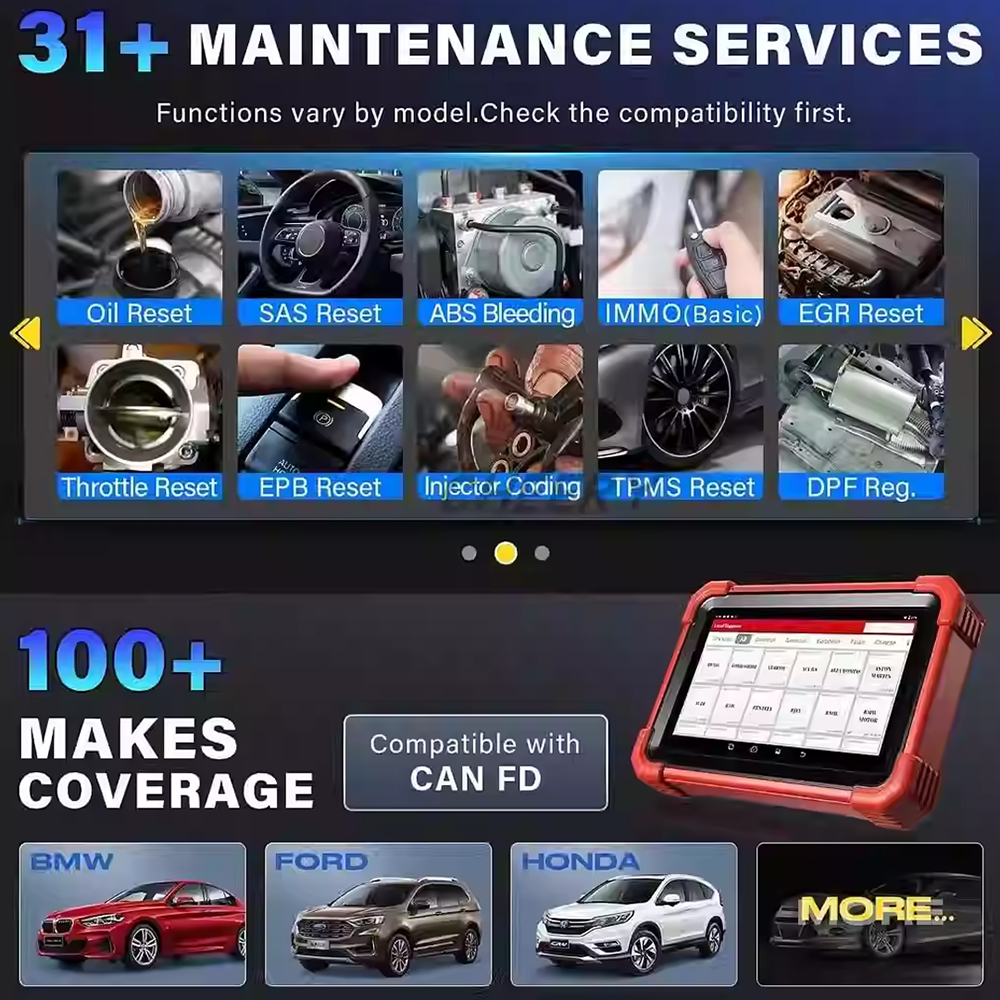 ABS System, Engine System, SAS System, TPMS System, IMMO System, Battery System, Oil Service System, SRS System, DPF System, Air Conditioning System, Transmission System...
